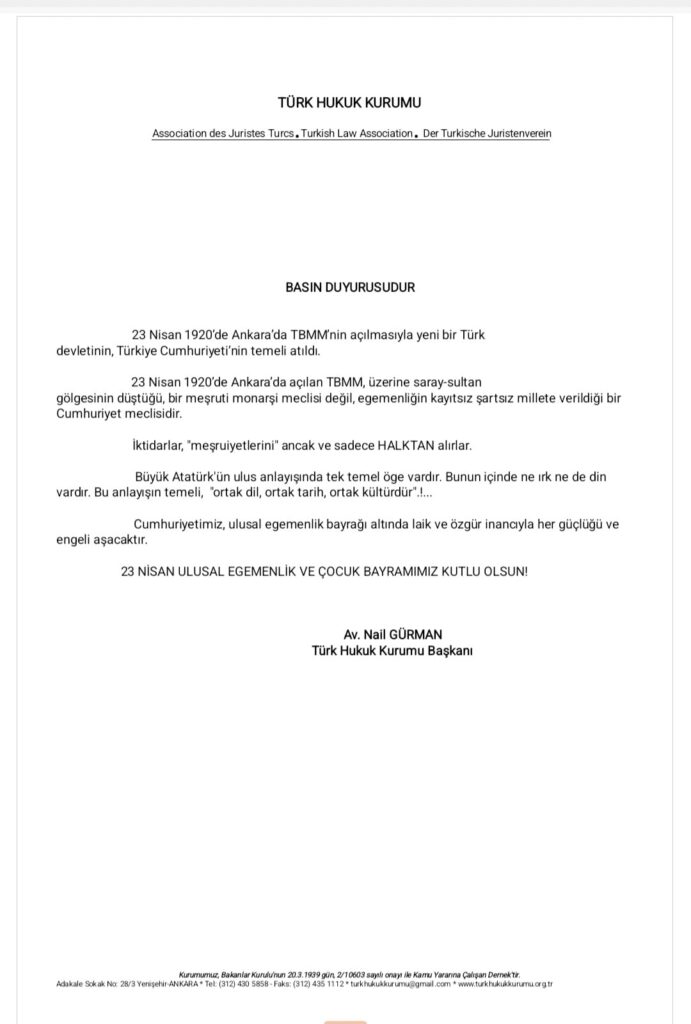 Ana SayfaArşivBasın Duyuruları23 NİSAN ULUSAL EGEMENLİK VE ÇOCUK BAYRAMI KUTLU OLSUN Nisan 23, 2026 FacebookTwitterPinterestWhatsApp 23 NİSAN ULUSAL EGEMENLİK VE ÇOCUK BAYRAMI KUTLU OLSUN