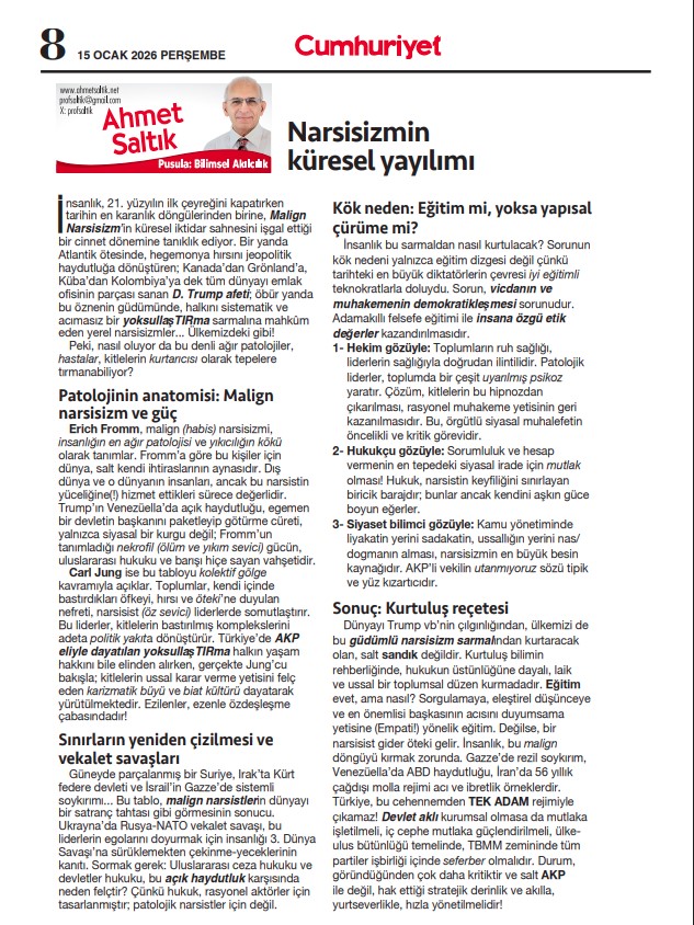 Ana SayfaArşivMakalelerNARSİSİZMİN KÜRESEL YAYILIMI Ocak 16, 2026 FacebookTwitterPinterestWhatsApp NARSİSİZMİN KÜRESEL YAYILIMI